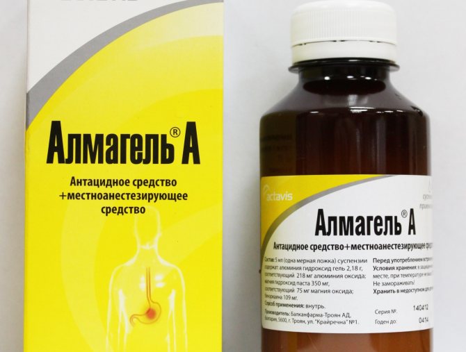 В состав препарата также входят гидроксид магния и гидроксид алюминия, но ещё одним компонентом является анестезин. Данный препарат тоже является антацидом, но при этом оказывает местное обезболивающее воздействие благодаря входящему в состав анестезину. «Алмагель А» применяется при тех же заболеваниях желудка и прочих органов пищеварения, что и «Алмагель», но в тех случаях, когда они сопровождаются выраженным болевым синдромом, рвотой и тошнотой.