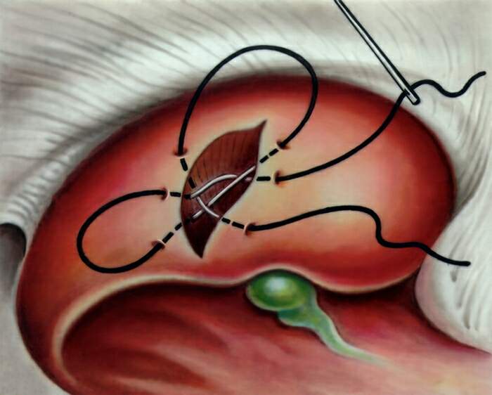 - марсупиализация по открытию доступа к кисте при расположении близ ворот печени, удалению жидкости, подшиванию стенок к операционной ране.