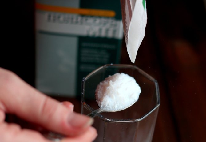 Рецепт: столовую ложку порошка развести в 100 мл прохладной воды.